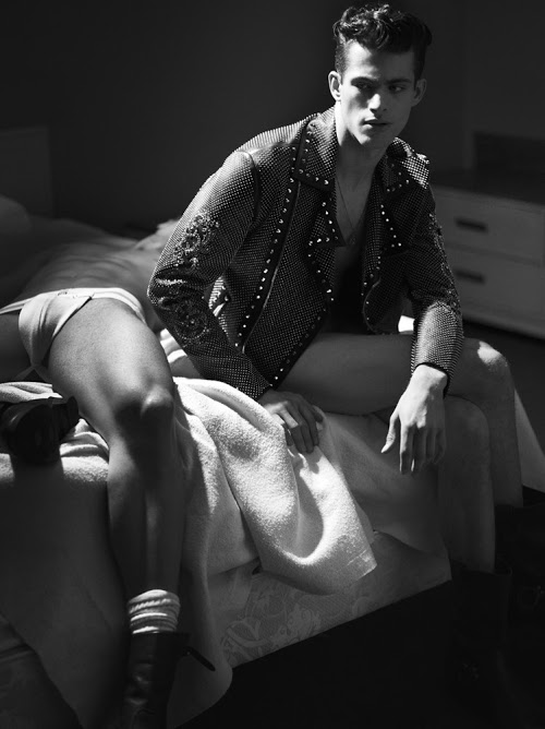 The latest issue of Interview Magazine with Kanye West on the cover features a large spread by super-star photographers Mert Alas & Marcus Piggot with models that include Chad White, Brian Shimansky, Landon Falgoust, Jamie Wise, Veir Couturier, Kurt Collins, Jordan Elias and Adam Kai. The shoot titled American Hustle, was styled by Karl Templer.