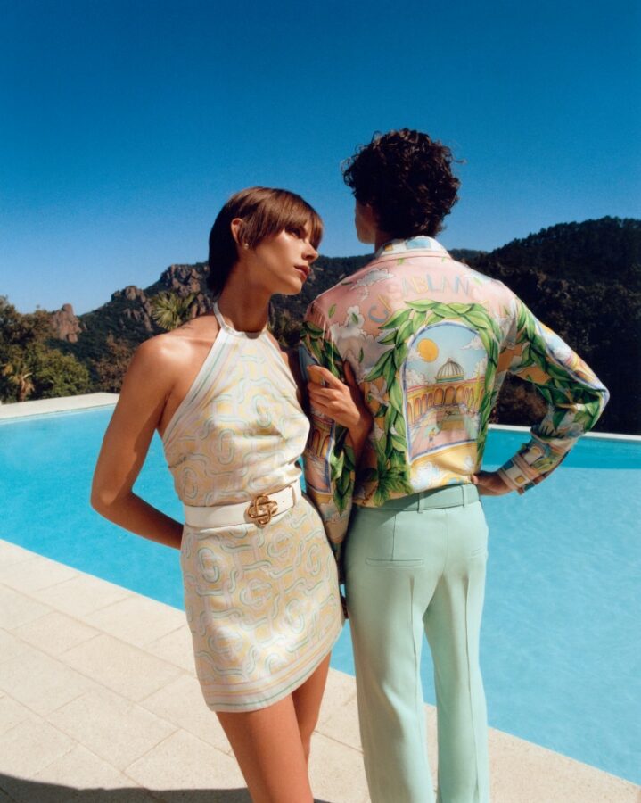 The CASABLANCA PARIS Pre-Fall 2024 fashion campaign was captured at the picturesque Villa Green Galaxie in the Esterel region, overlooking the Mediterranean Sea. The campaign brought together a talented team of creatives, each contributing their unique skills to bring the vision to life.