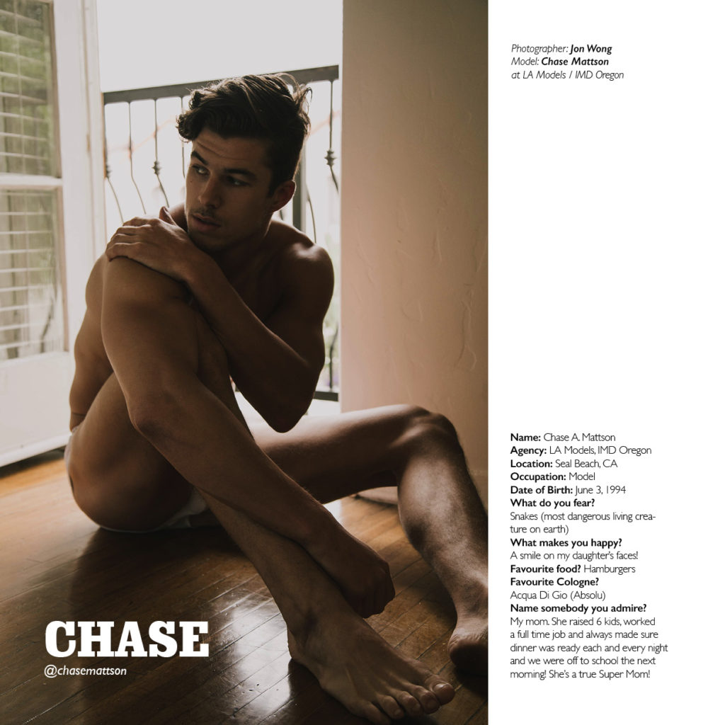 Chase Mattson at LA Models is another of the cool models featured in our special edition photo book #50DUDES, photographed by Jon Wong. Check out our Q&A with Mason further down this post.