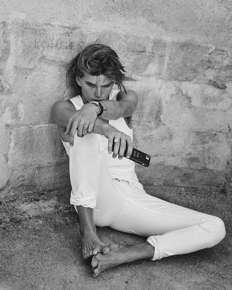 Australian model Jordan Barrett at IMG is photographed here by Paul Scala for Buro Magazine, styled by Brad Homes with makeup by Giulio Panciera.