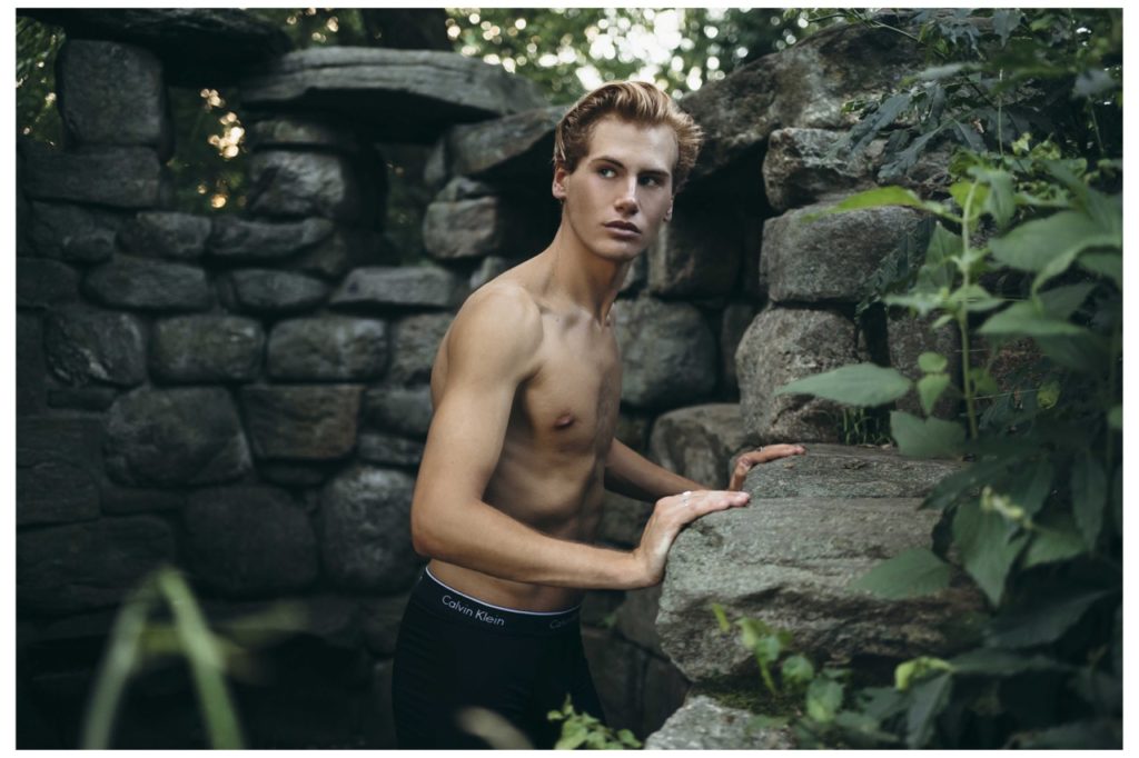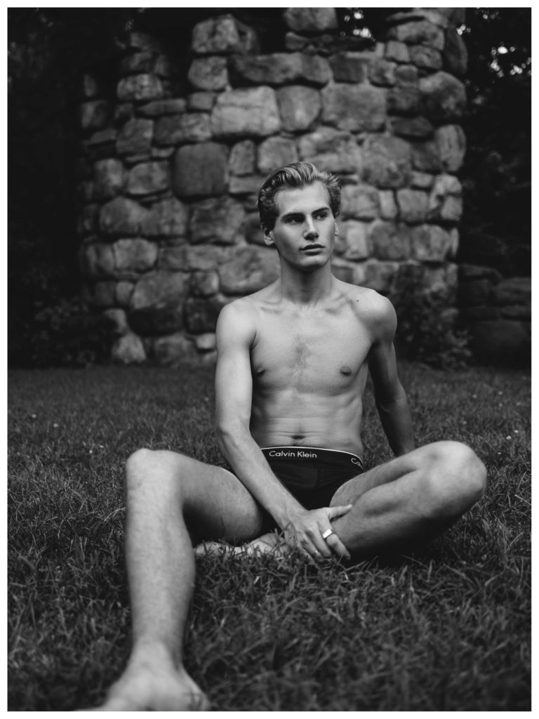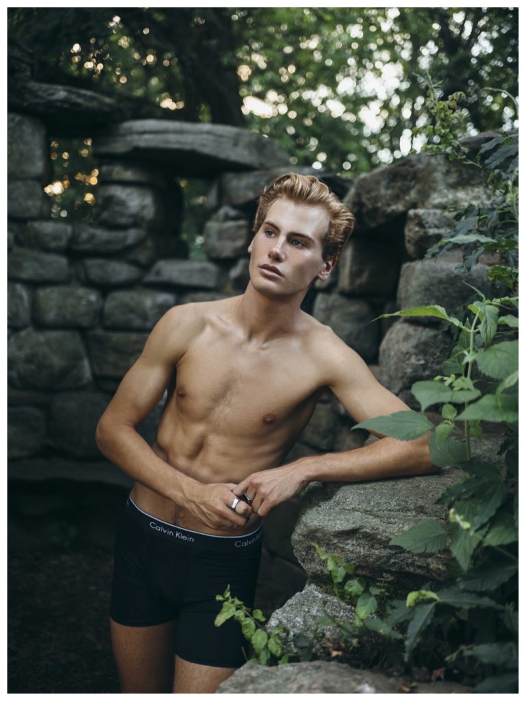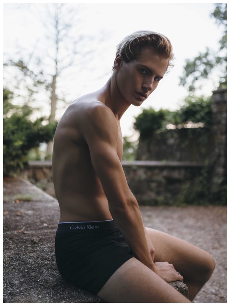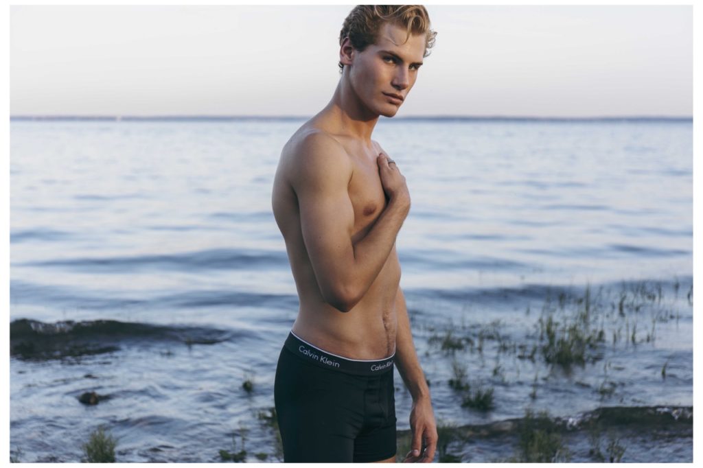 Matthew Buurke at Hello Models is photographed in this series by Kevin Sikorski for Yearbook Online. Fashion includes Underwear by Calvin Klein, Yellow swimsuit by H&M and striped swimsuit by H&M.