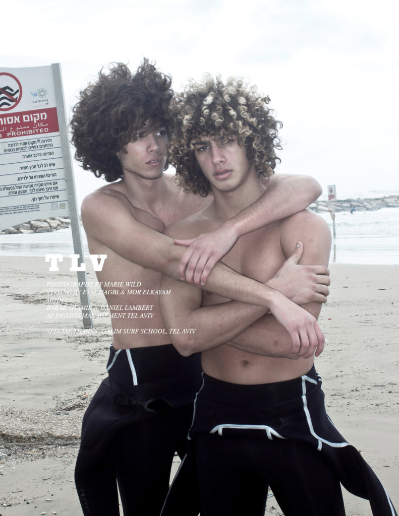 Barak Shamir & Daniel Lambert at Passion Mgmt in Tel Aviv are photographed by Marie Wild for GYM CLASS B. Styled by Eyal Hagbi & Mor Elkayam with special thanks to Galim Surf School, Tel Aviv. The issue is available in both print & digital editions (the digital edition features extra pages).