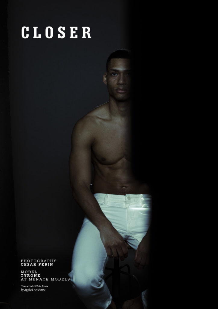 This portrait series by photographer Cesar Perin features the handsome Tyrone at Menace Management in London, as featured in Yearbook Fanzine #17. Trousers & White Jeans by Applied Art Forms. The edition is available in casebound hardcover, softcover, and digital editions from the links below.