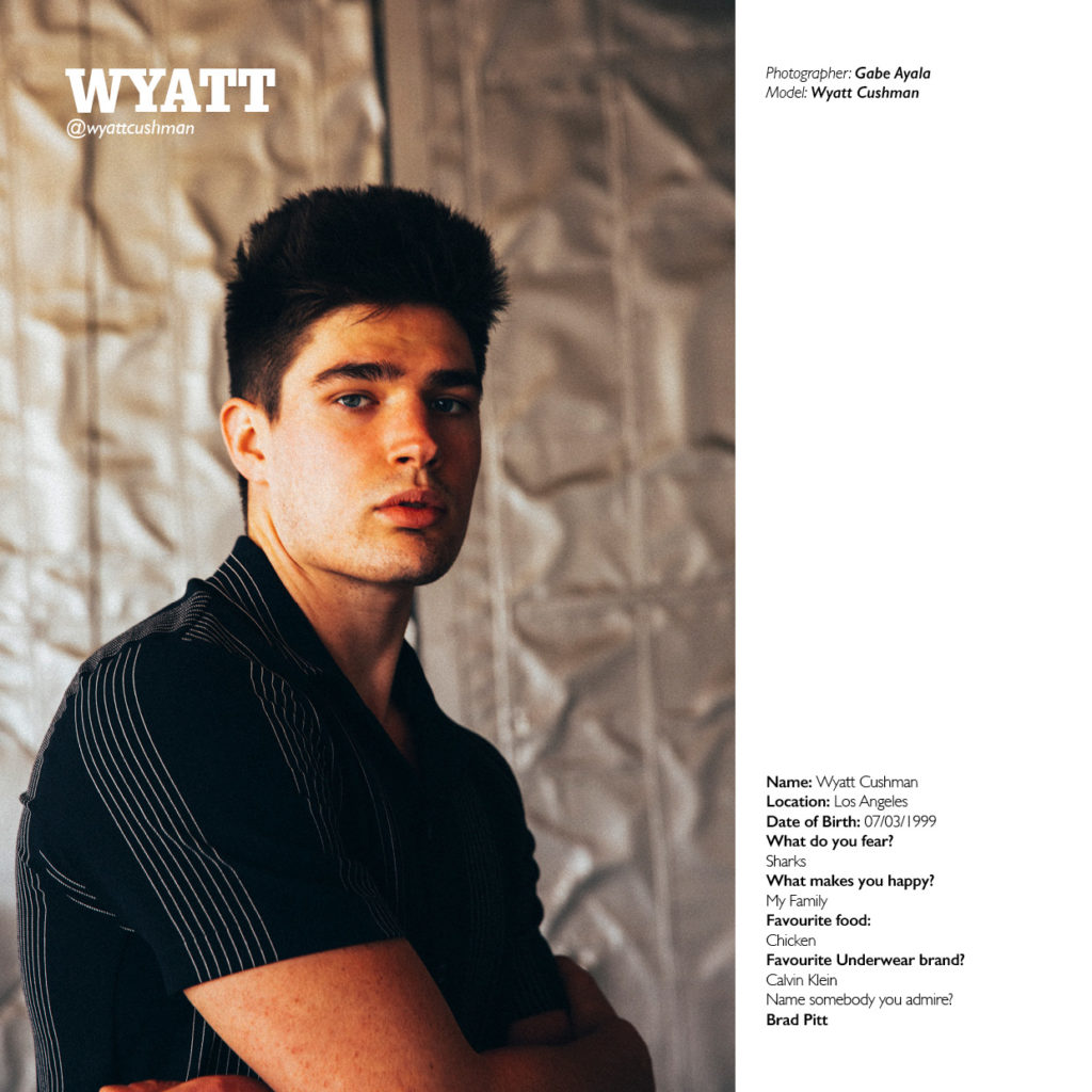 Wyatt Cushman features in our special edition photo-book #50DUDES, photographed by Gabe Ayala. Check out our Q&A with Wyatt further down this post.